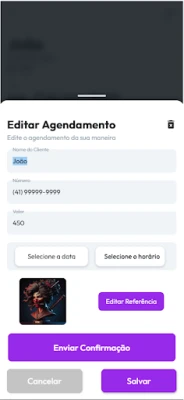 Inclusão de Imagens de Referência: Um recurso essencial para profissionais criativos: anexe imagens de referência diretamente aos agendamentos ou perfis dos clientes. Isso ajuda a garantir que as ideias de design fiquem claras e bem definidas, promovendo uma comunicação eficiente entre o tatuador e o cliente.