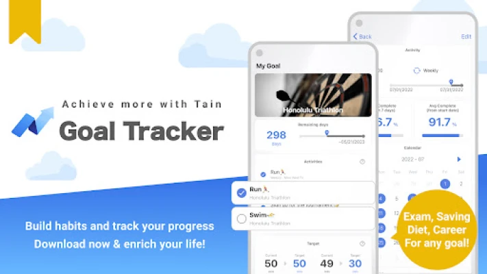 Set habits and ToDo’s to achieve your goals. You can set detailed frequency to meet your pace.