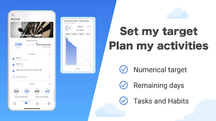Manage multiple goals that you want to achieve. You can set deadlines and numerical indicators for each goal.