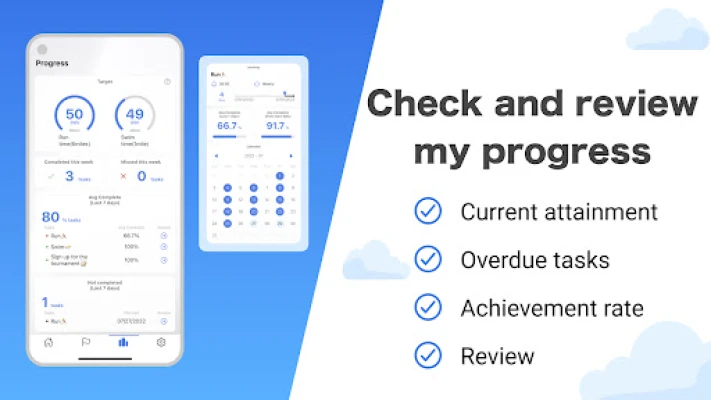 It is important to look back at your progress regularly. The achievement progress and calendar functions will tell you how much you have accomplished, what your unfinished tasks are, and more intuitively. You can reset your pace that is more comfortable for you based on past performance, and continue to perform your daily tasks to move closer to your goals.