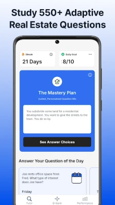 Commit Yourself to study and pass! Unlike other real estate apps, our study prep will help you feel confident and ready for the final test. Take 10 min every day, check our daily questions and practice tests and be ready for a D day. Pass on the 1st try and thank us later.