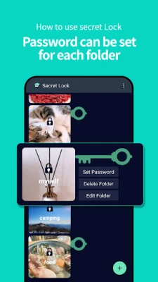 - Provides a lock function for each folder. Set the password and lock it with a key.